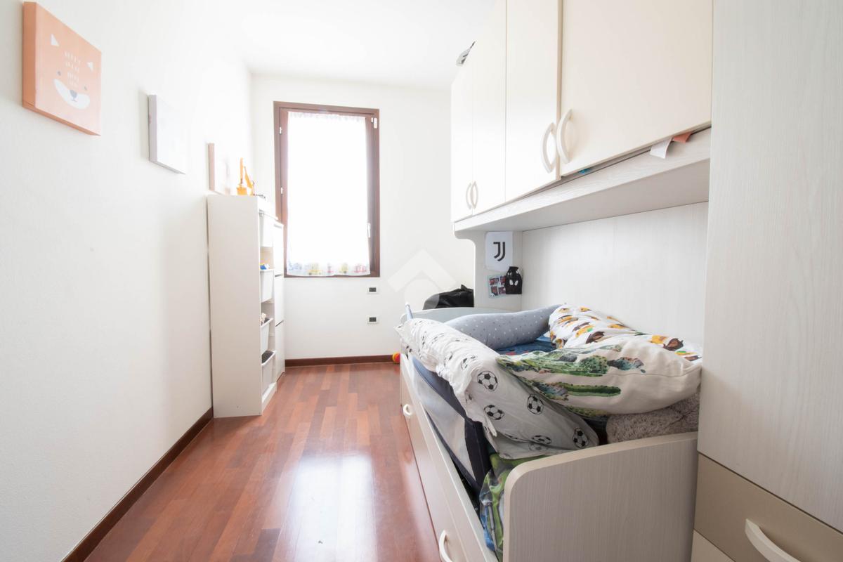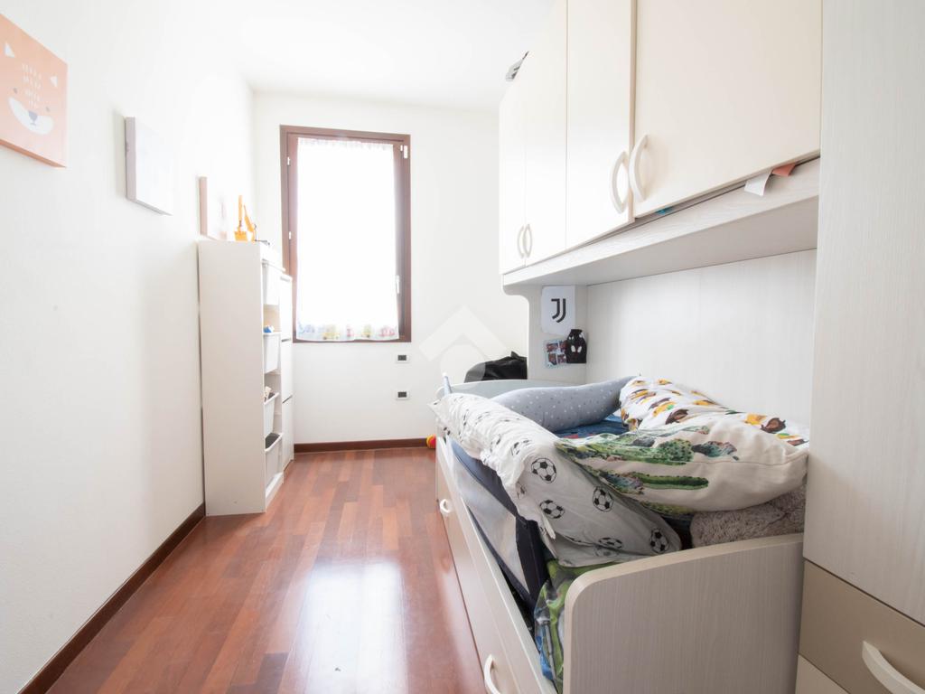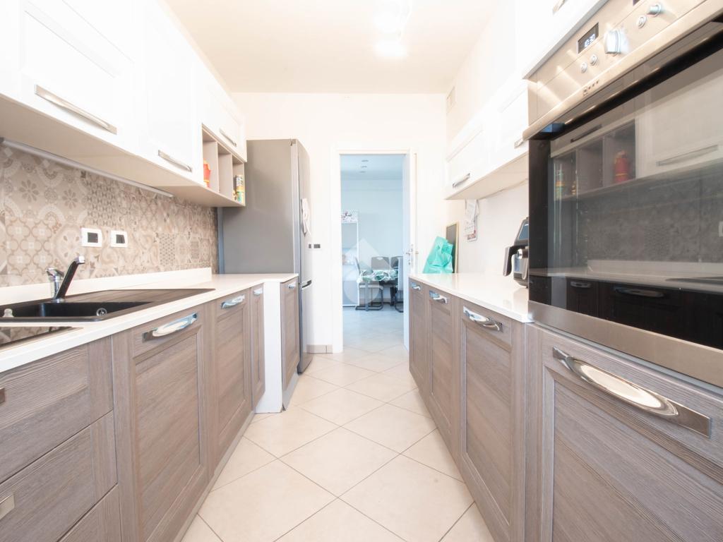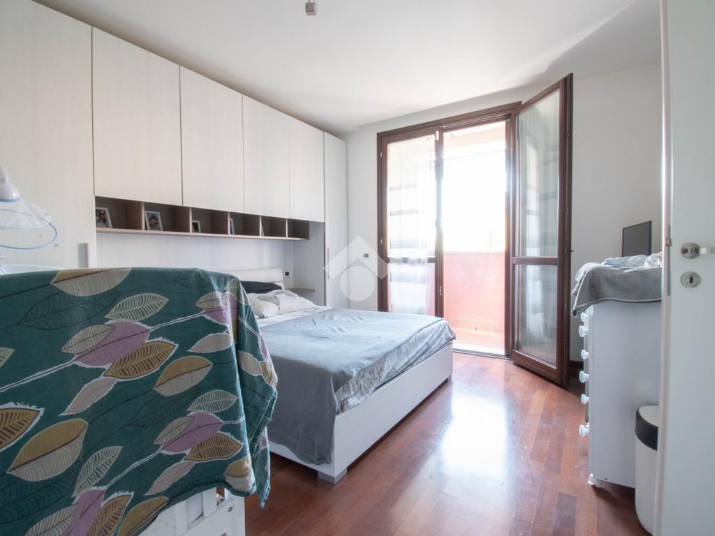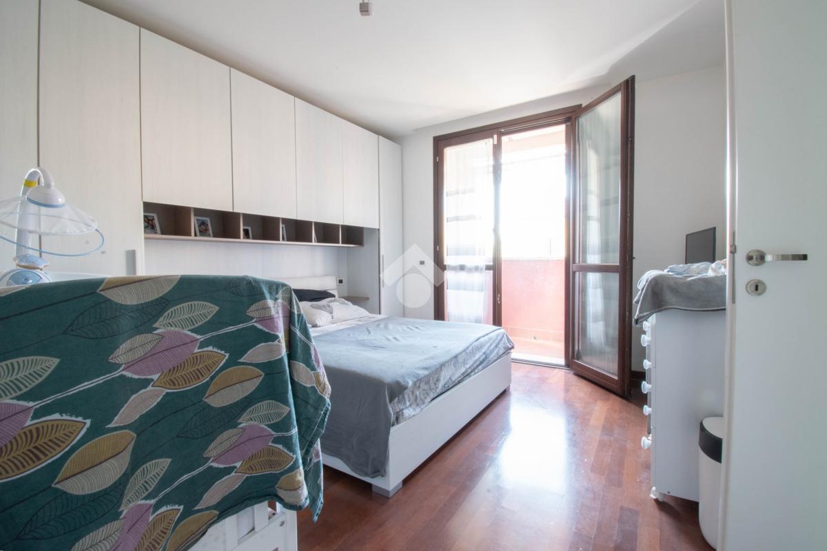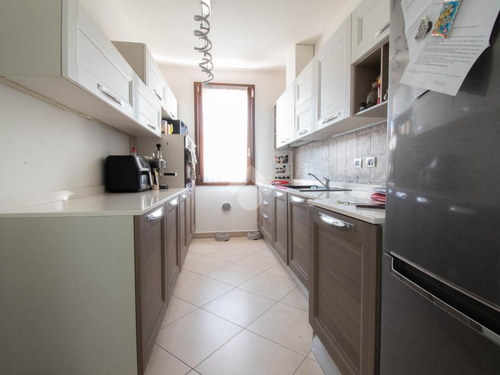 L'immobile si vende arredato di cucina e mobilio del bagno ed è composto da ingresso in soggiorno con terrazzino servito da una tenda sole e con affaccio su un parco, cucina separata, disimpegno notte, camera matrimoniale con balcone, camera singola e bagno. Garage singolo al piano terra e funzionale cantina di proprietà.