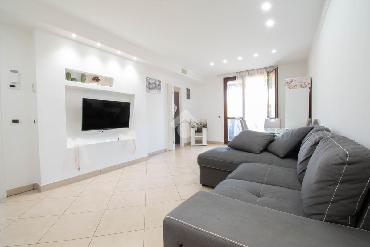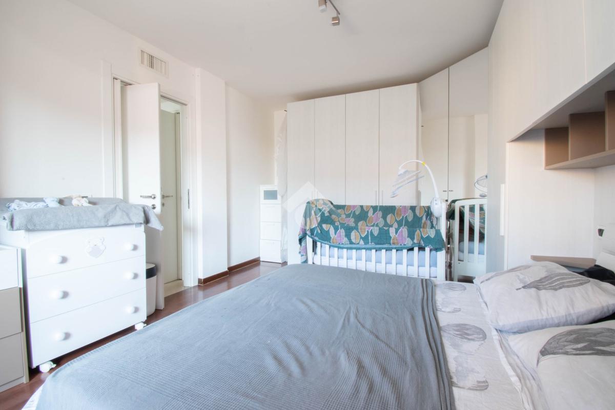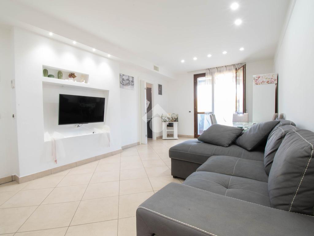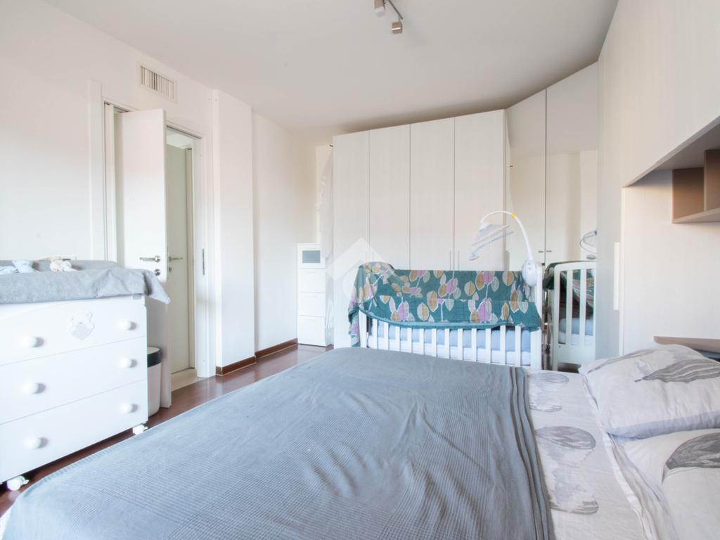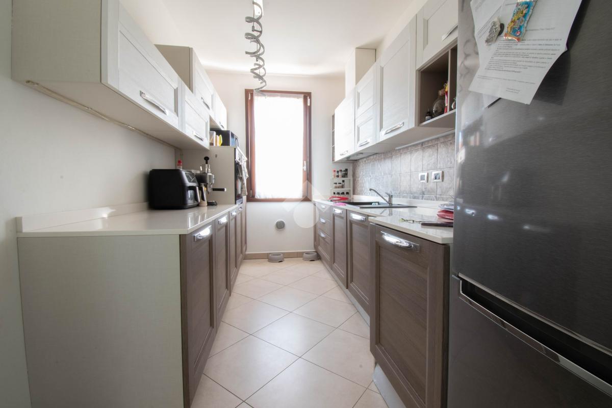 L'immobile si vende arredato di cucina e mobilio del bagno ed è composto da ingresso in soggiorno con terrazzino servito da una tenda sole e con affaccio su un parco, cucina separata, disimpegno notte, camera matrimoniale con balcone, camera singola e bagno. Garage singolo al piano terra e funzionale cantina di proprietà.