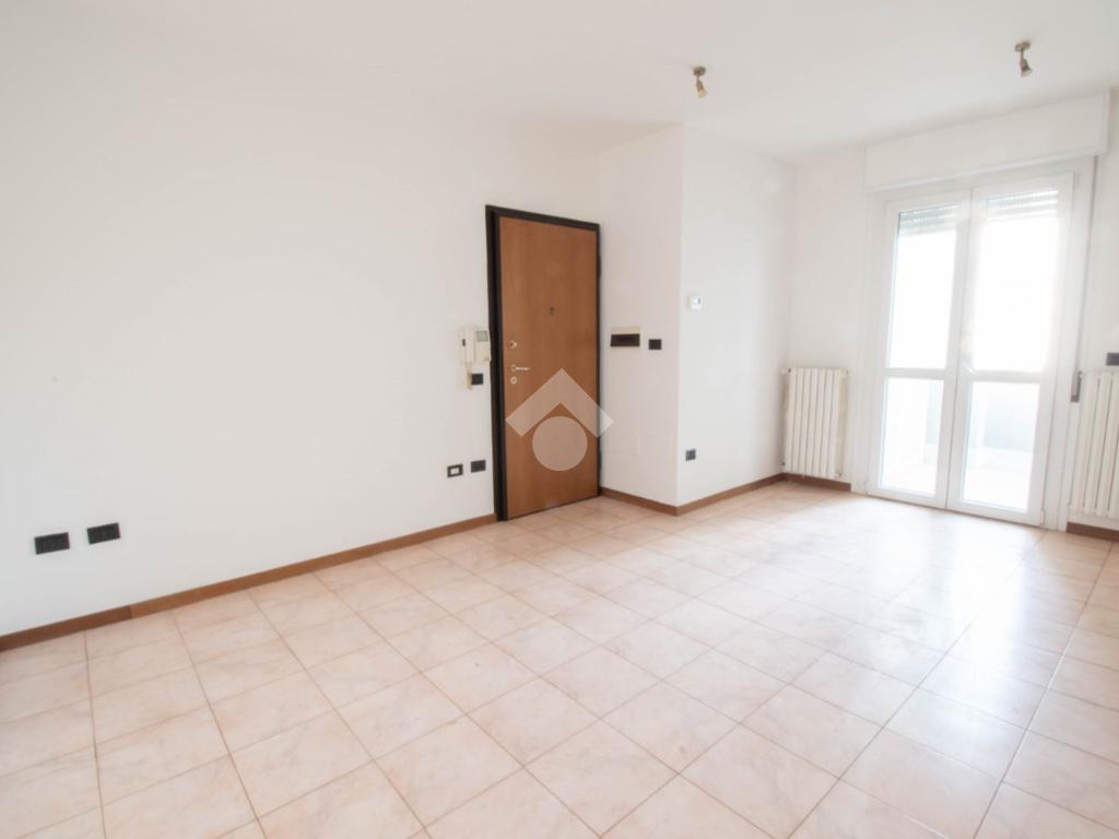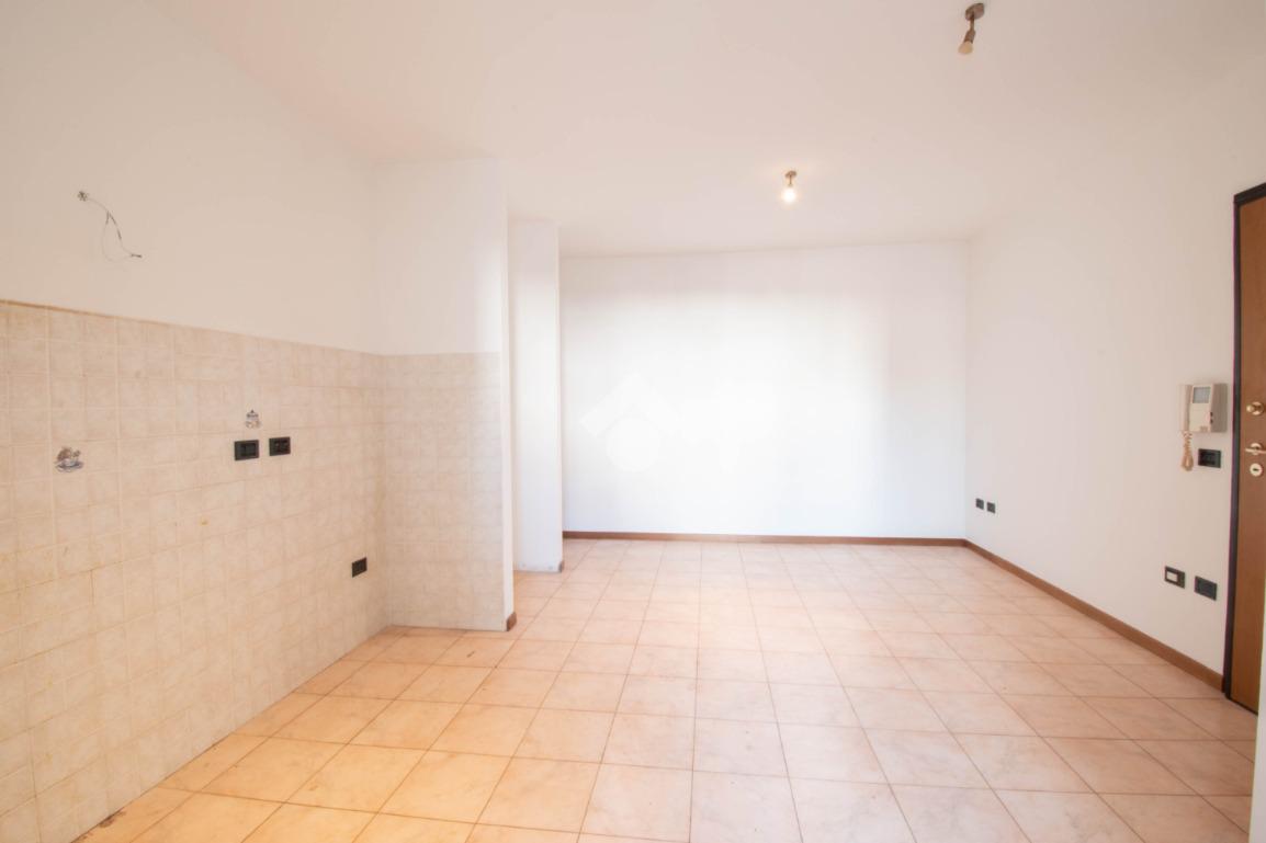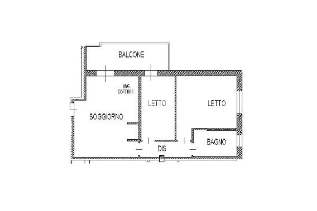 L'appartamento è situato al 1° piano con ascensore ed è composto da: ingresso in soggiorno con cucina a vista e sfogo su un balcone, disimpegno, camera matrimoniale, camera singola e bagno con doccia. Rimessa singola nell'interrato.