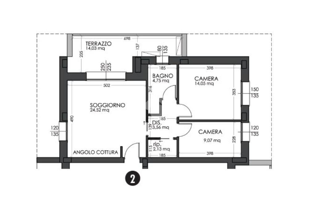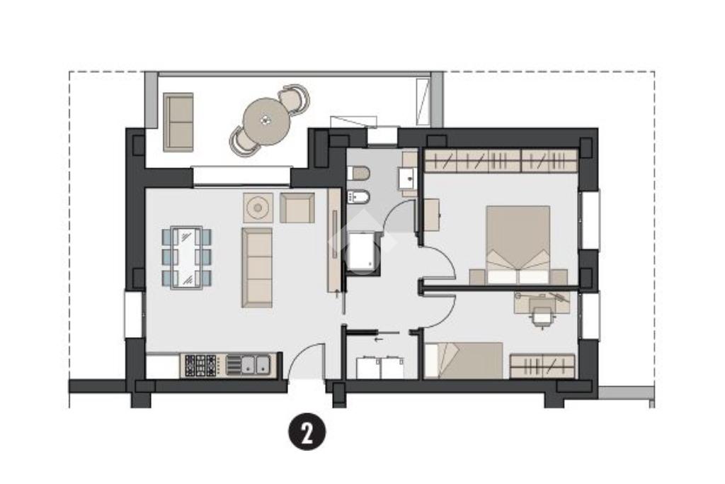Mostriamo l'appartamento situato al 1° piano con terrazzo così composto: soggiorno con cucina a vista, disimpegno notte, camera matrimoniale, camera singolo, bagno e lavanderia. Garage e posto auto di proprietà.
