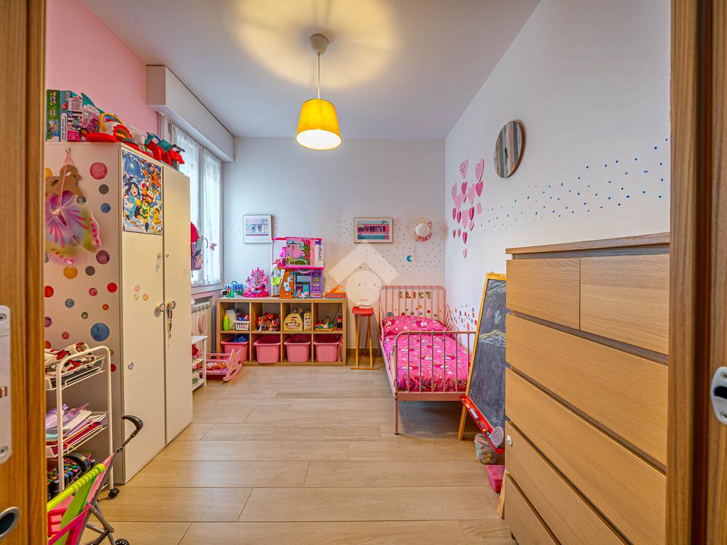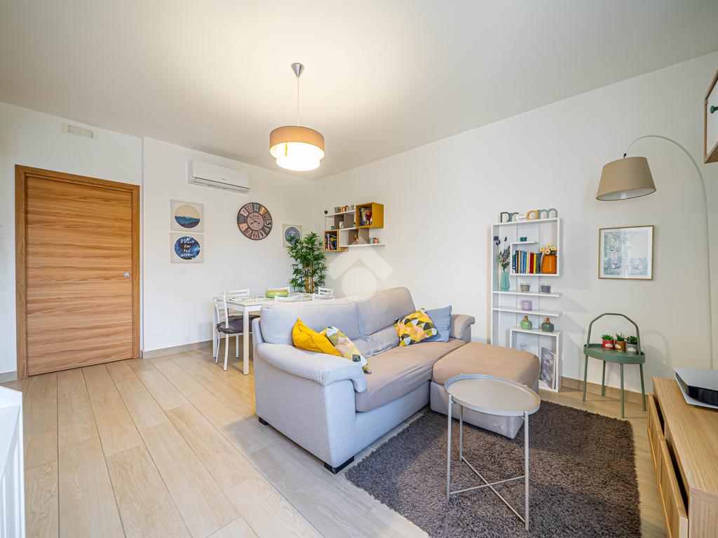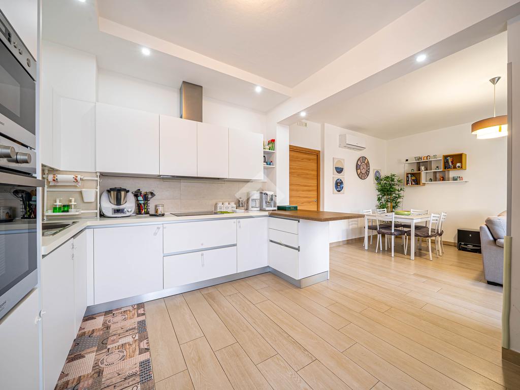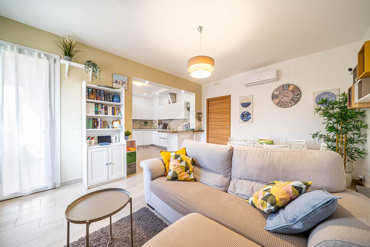 L'immobile si trova al 2° piano, è dotato di un'ottima esposizione sui lati sud/est/ovest ed è servito dall'ascensore. Ingresso, soggiorno, cucina open-space con balcone, disimpegno notte, camera matrimoniale con bagno e cabina armadi, camera singola, ulteriore bagno, piccolo ripostiglio nell'ingresso. Garage singolo di proprietà.
