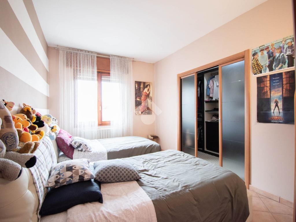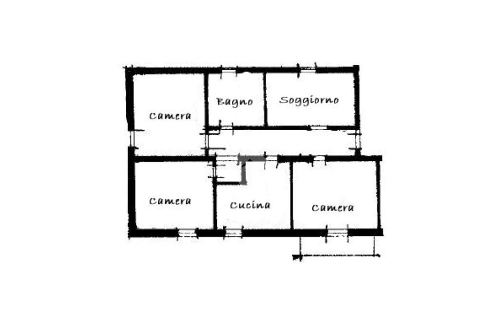 L'immobile si trova in una palazzina di poche famiglie ed è così composto: soggiorno, cucina abitabile, camera matrimoniale con balcone, ulteriori 2 camere da letto matrimoniali e bagno con vasca e doccia. Garage singolo al piano terra.