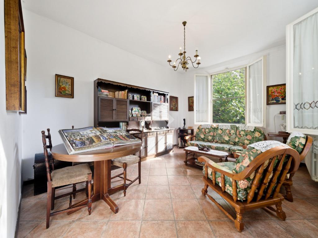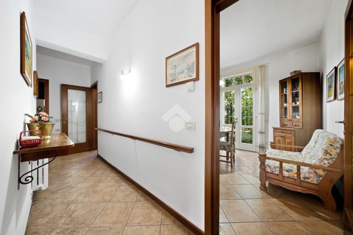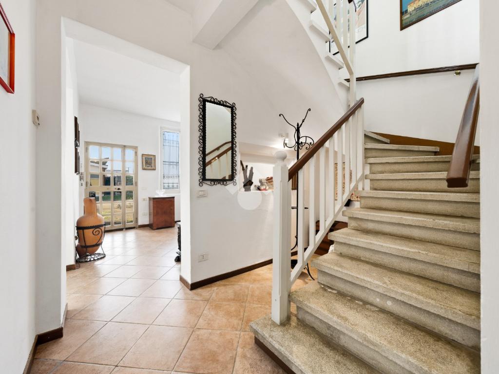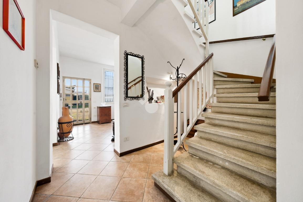 La casa è dotata di un ampio giardino privato di circa 550 mq ed è così composta: al piano terra ingresso, soggiorno, tinello, cucinotto, camera matrimoniale, disimpegno con ripostiglio, bagno, cantina e garage singolo. Al piano di sopra spazioso appartamento composto da soggiorno, cucina abitabile, 4 camere da letto e bagno.