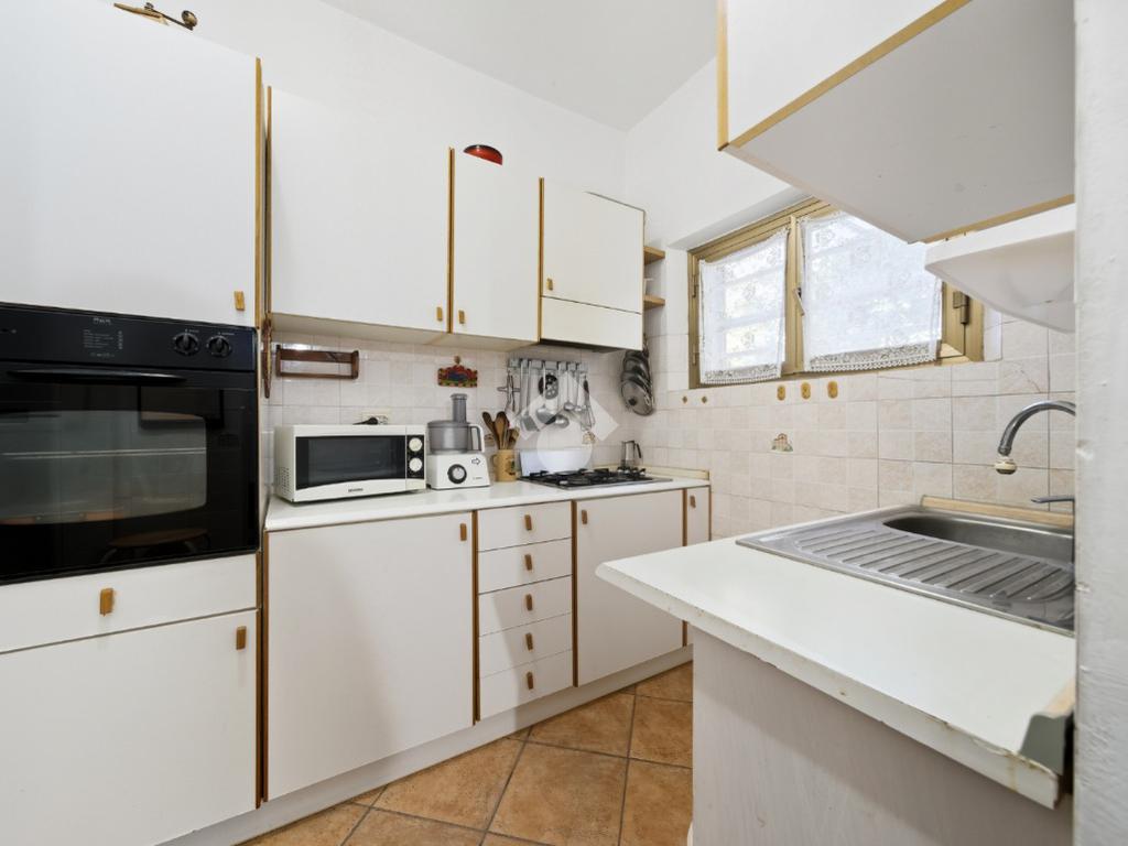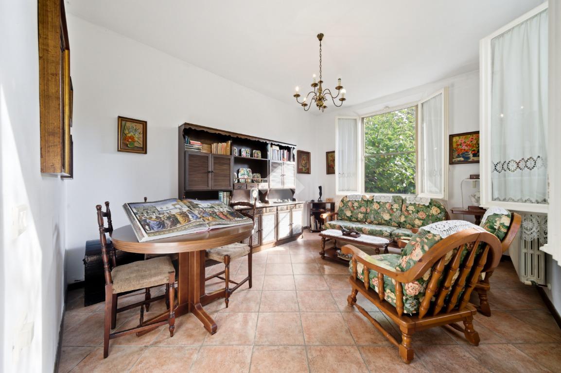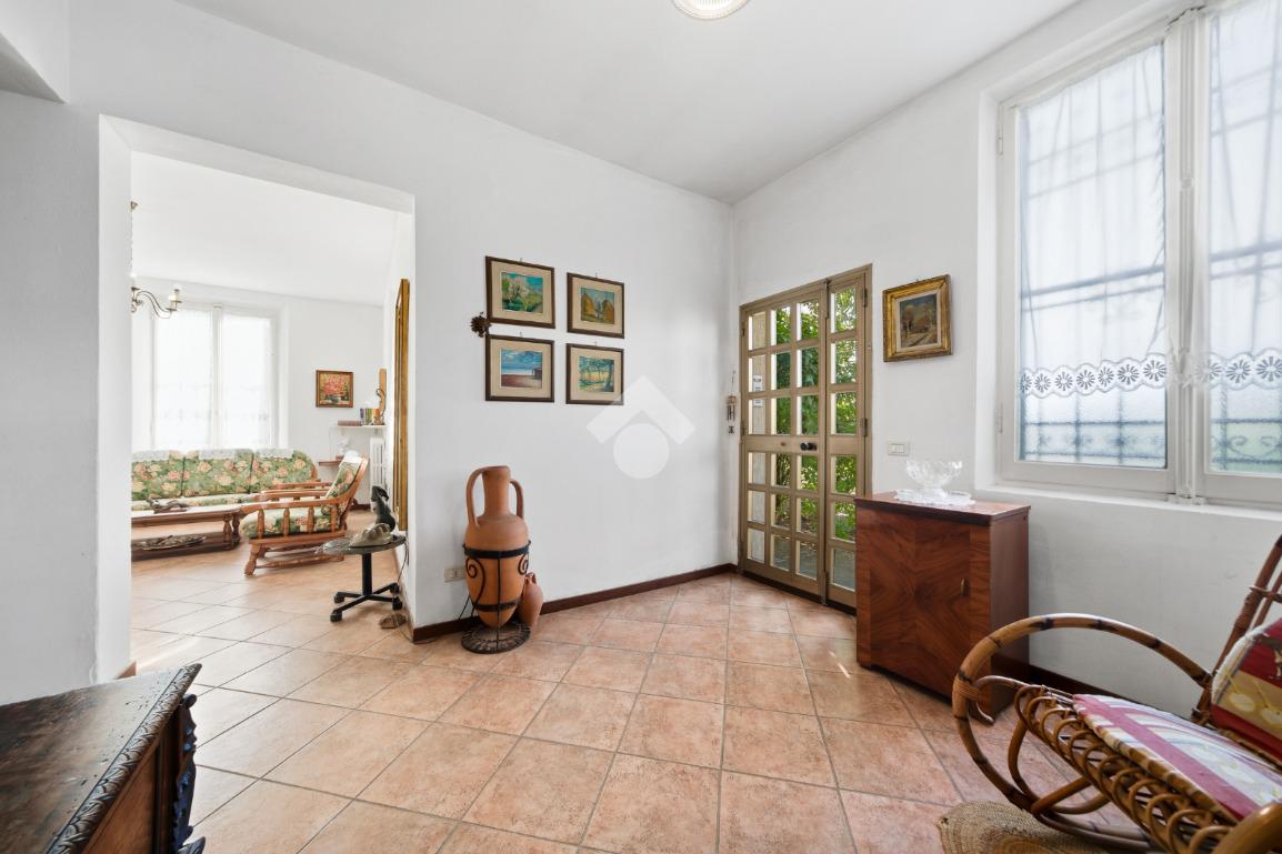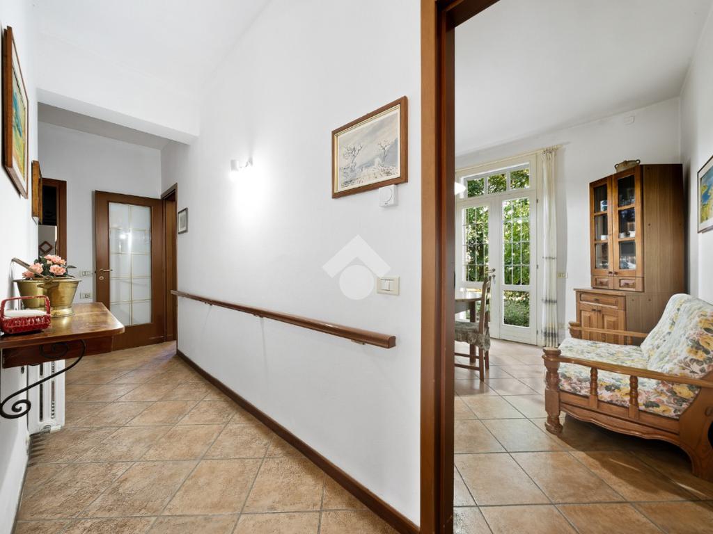 La casa è dotata di un ampio giardino privato di circa 550 mq ed è così composta: al piano terra ingresso, soggiorno, tinello, cucinotto, camera matrimoniale, disimpegno con ripostiglio, bagno, cantina e garage singolo. Al piano di sopra spazioso appartamento composto da soggiorno, cucina abitabile, 4 camere da letto e bagno.