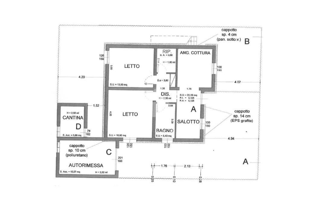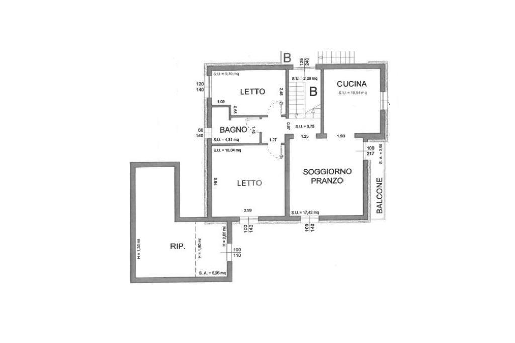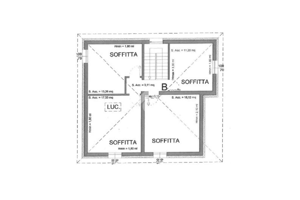 La casa è così composta: al piano terra ingresso in soggiorno, cucina abitabile, disimpegno, 2 camere da letto matrimoniali, bagno e ripostiglio. Al piano 1°: soggiorno con balcone, cucina abitabile, camera matrimoniale, camera singola e bagno. All'ultimo piano ampia soffitta suddivisibile in più ambienti abitabili.
