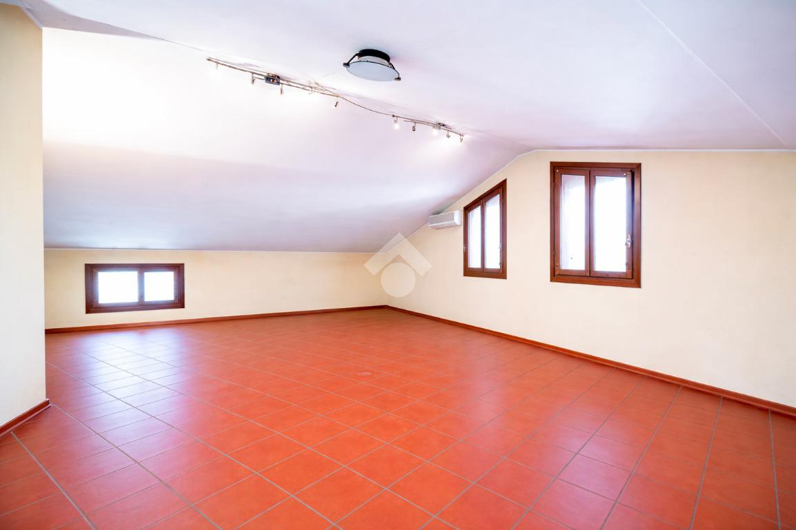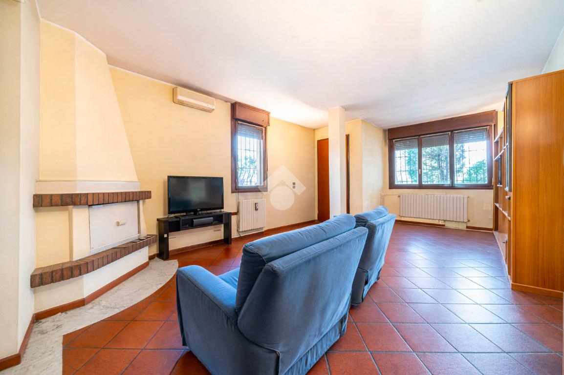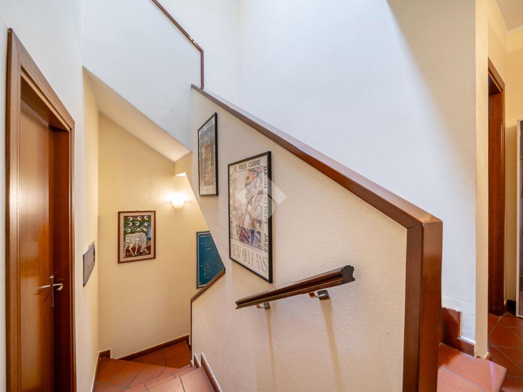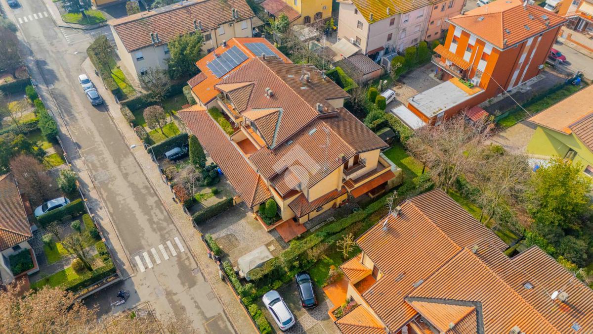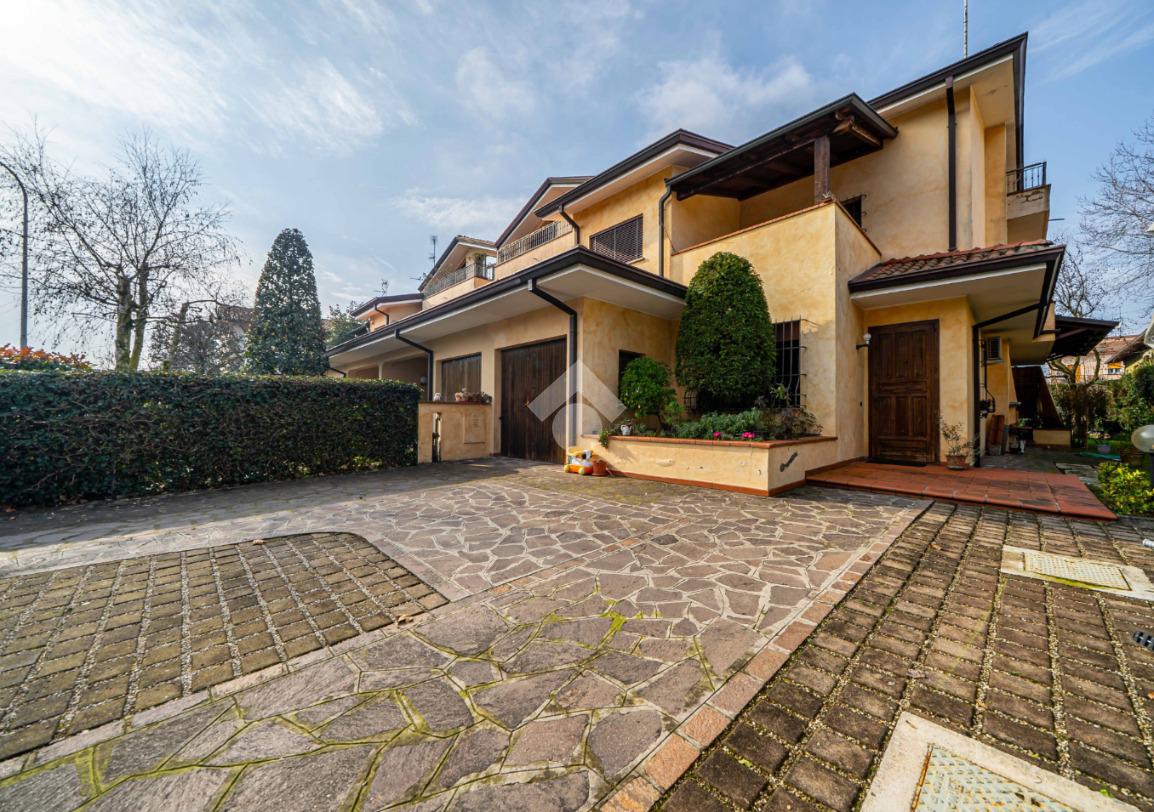 L'abitazione disposta su due livelli presenta un giardino sui 3 lati con una funzionale area barbescue posta sul retro e riparata da un portico. La casa presenta la zona giorno al piano terra: soggiorno con camino, sala da pranzo, cucina abitabile, lavanderia e bagno. Al piano superiore vi è la zona notte composta da 3 camere da letto, 2 bagni (di cui uno con vasca idromassaggio), un terrazzo ed un balcone. Soffitta all'ultimo piano di circa 27 mq perfetta come stanza giochi, studio o sala tv. Garage doppio al piano terra con ripostiglio.