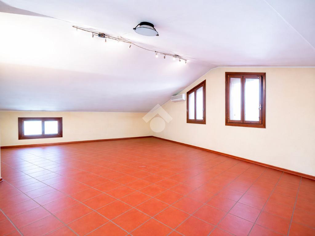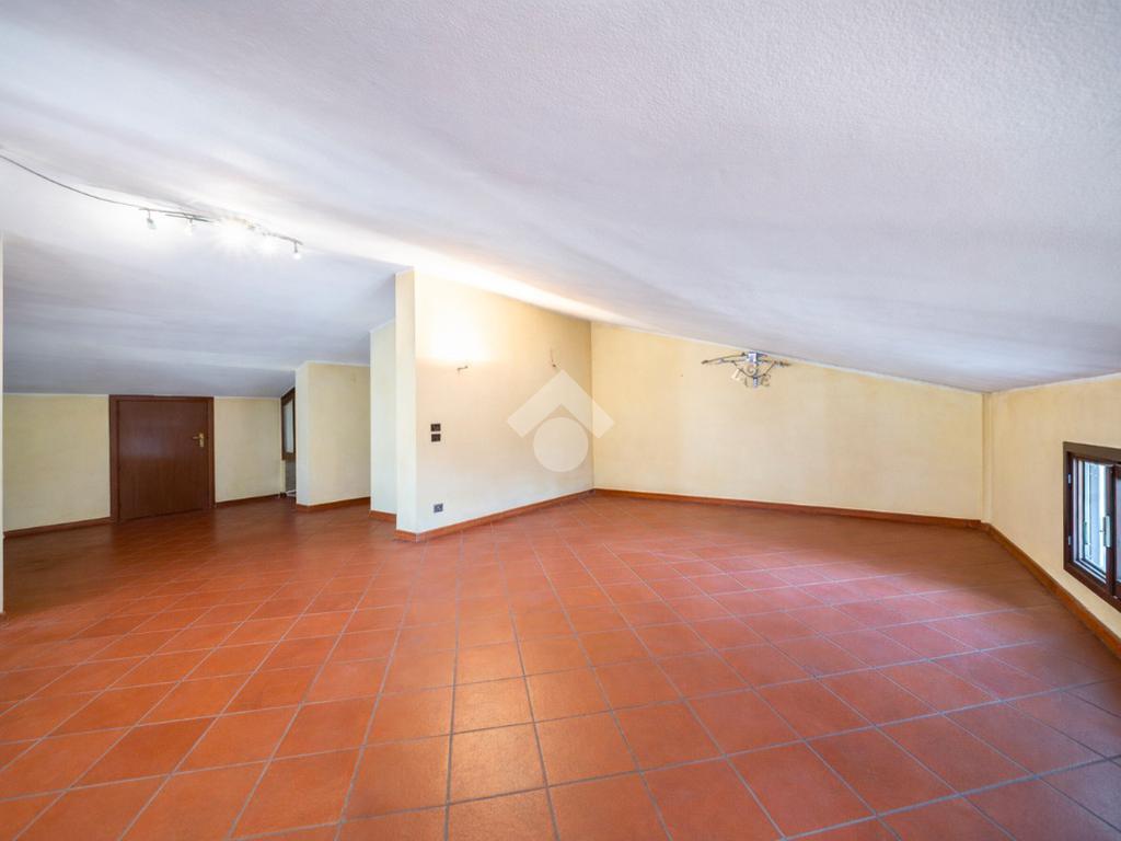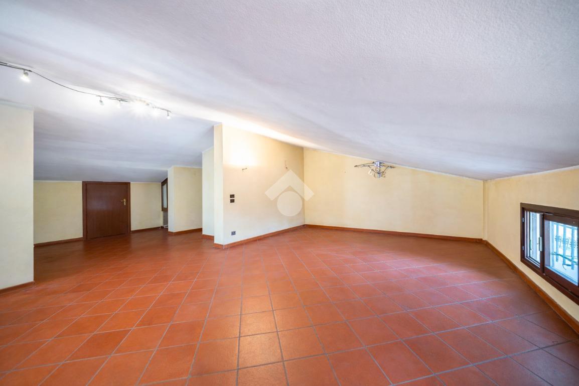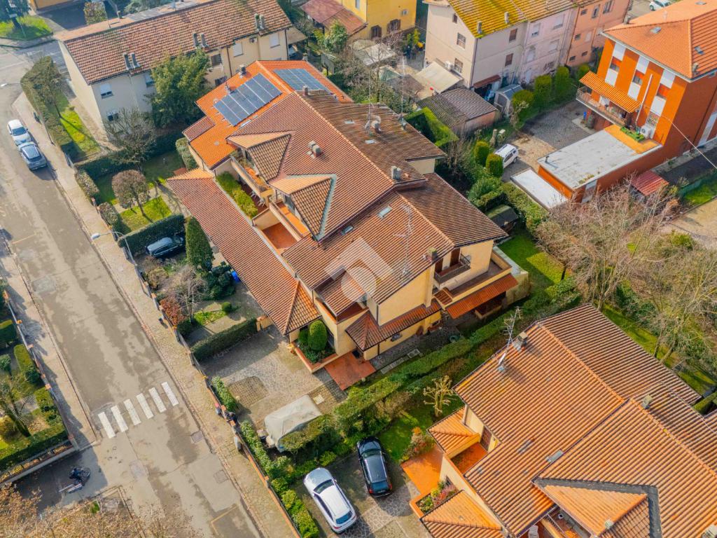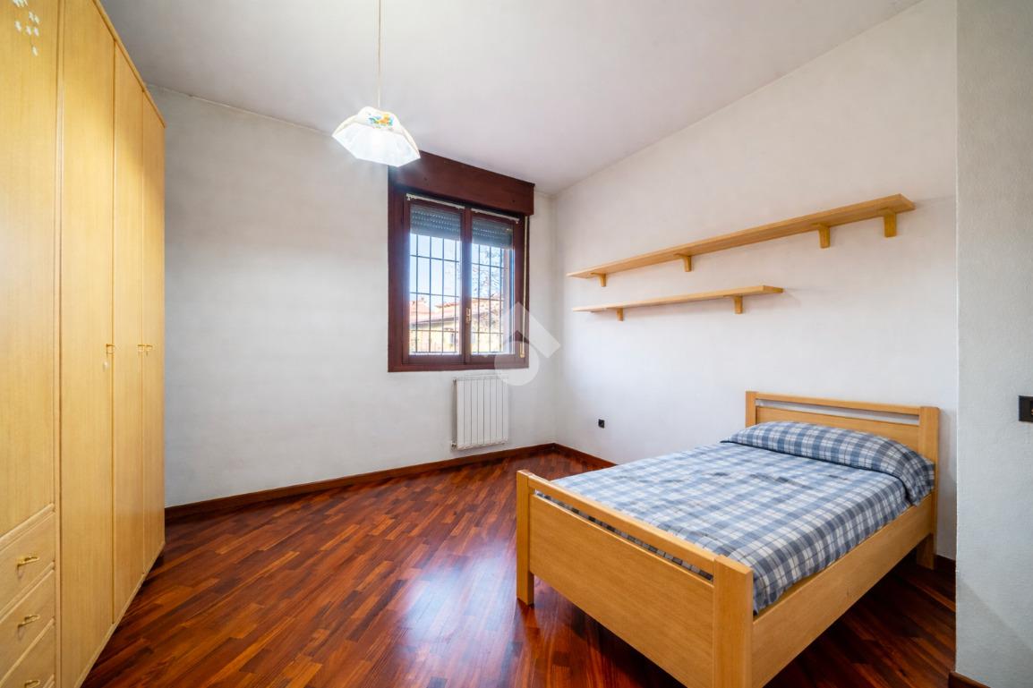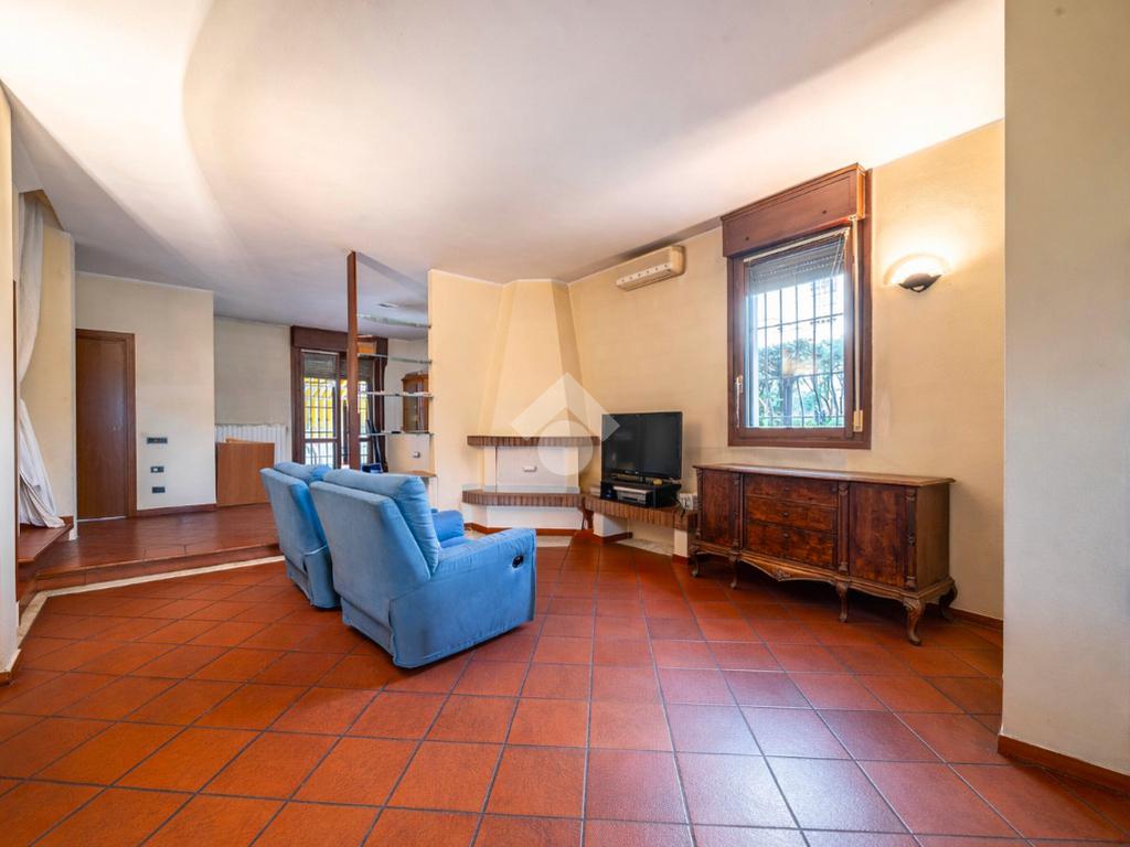 L'abitazione disposta su due livelli presenta un giardino sui 3 lati con una funzionale area barbescue posta sul retro e riparata da un portico. La casa presenta la zona giorno al piano terra: soggiorno con camino, sala da pranzo, cucina abitabile, lavanderia e bagno. Al piano superiore vi è la zona notte composta da 3 camere da letto, 2 bagni (di cui uno con vasca idromassaggio), un terrazzo ed un balcone. Soffitta all'ultimo piano di circa 27 mq perfetta come stanza giochi, studio o sala tv. Garage doppio al piano terra con ripostiglio.